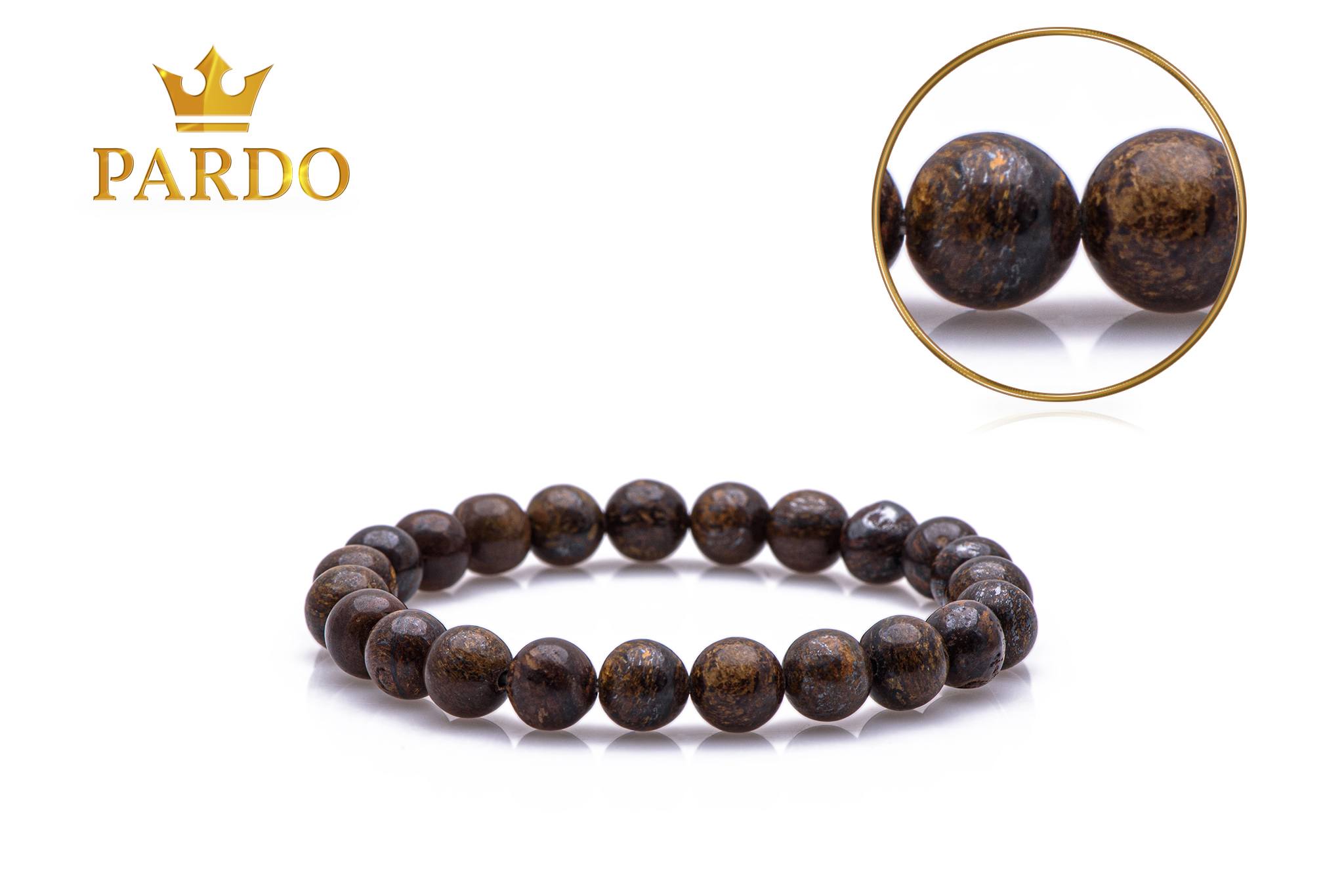 Brățară Pardo cu pietre semiprețioase Bronzit de 8 mm realizată cu elastic