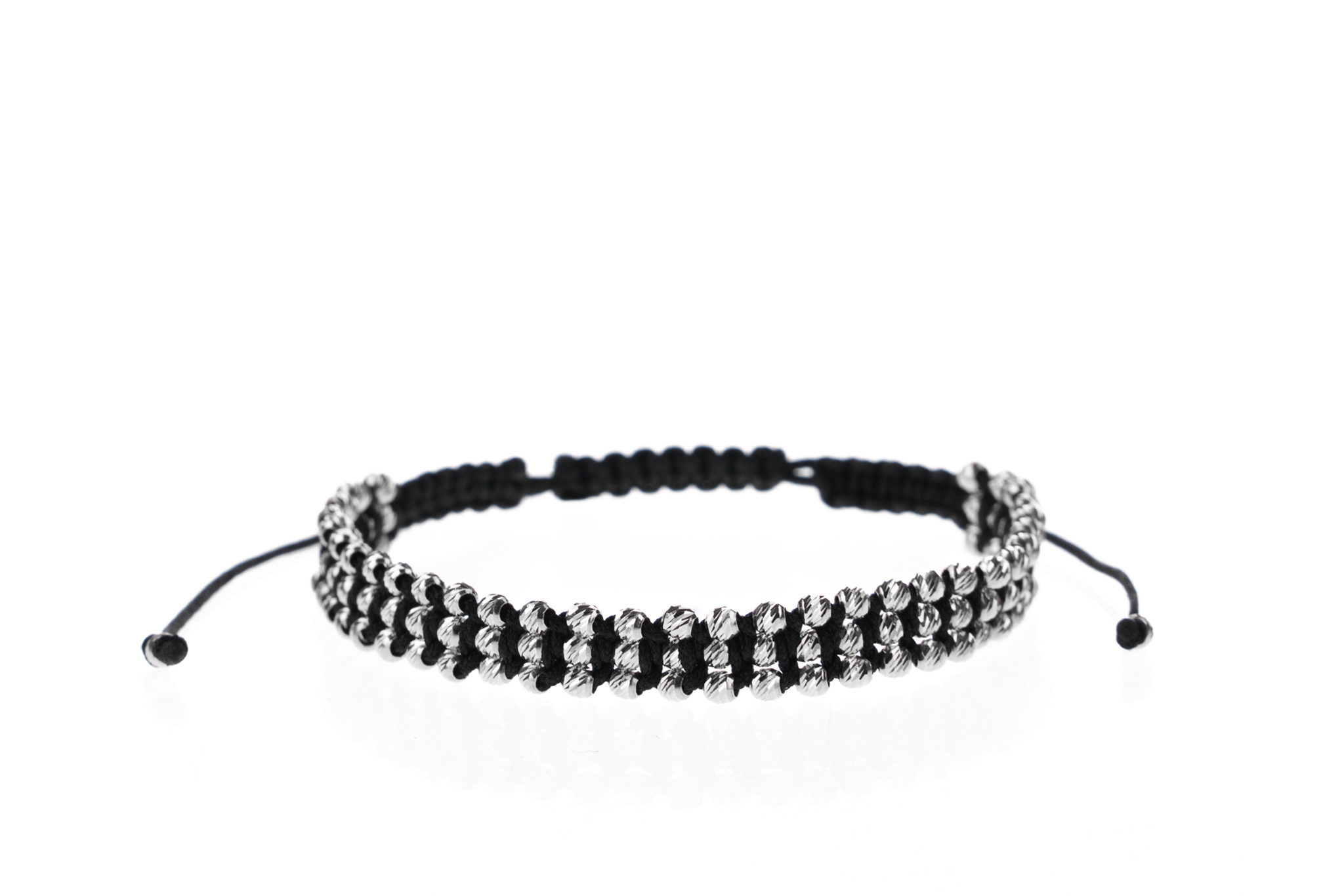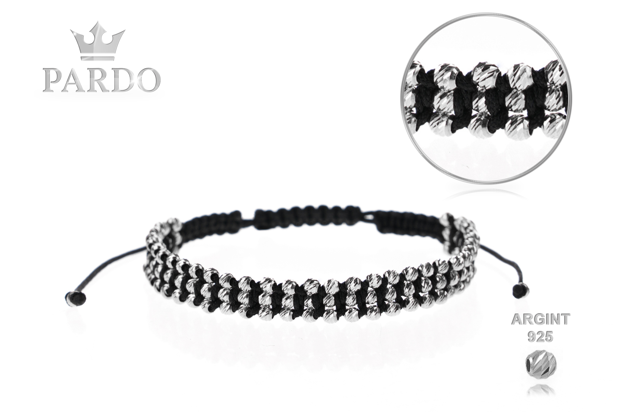 Brățară PARDO realizată manual în atelier propriu cu șnur de calitate premium folosind o tehnică deosebită de împletire a șnurului. Brățara este realizată cu sfere din Argint 925 cu diametrul de 2.5 mm.