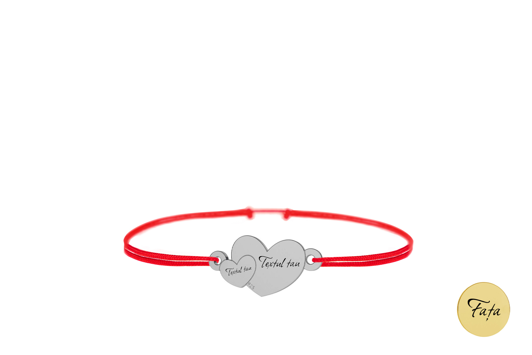 Brățară Pardo cu șnur și charm inimă dublă din Argint 925, lățime 17 mm, personalizat cu Gravura Laser