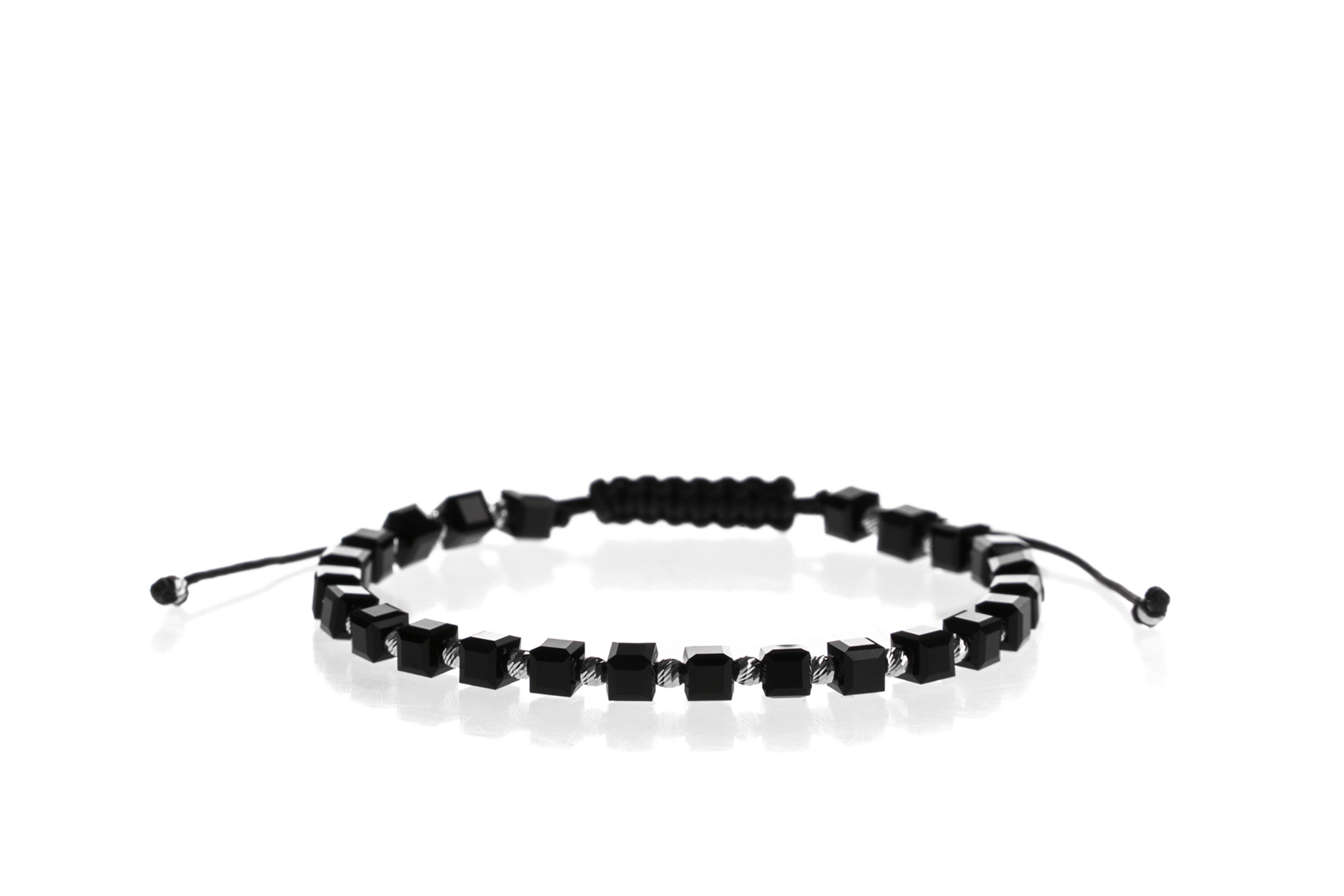 Brățară PARDO cu Argint 925 realizată manual în atelier propriu cu șnur de calitate premium, folosind o combinație unică de sfere striate din Argint 925 import Italia și pietre semiprețioase sau cristale de tip Cristale Sticla cu diametrul de 4 mm.
