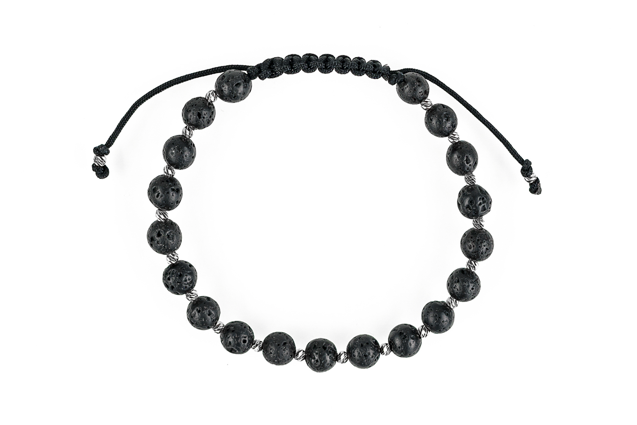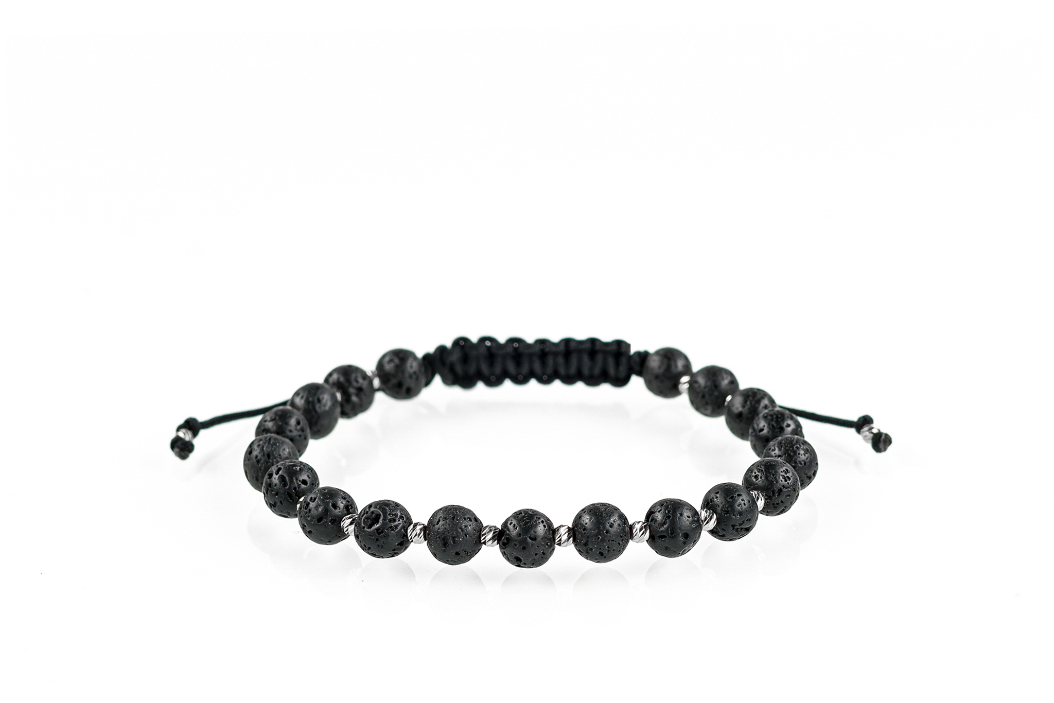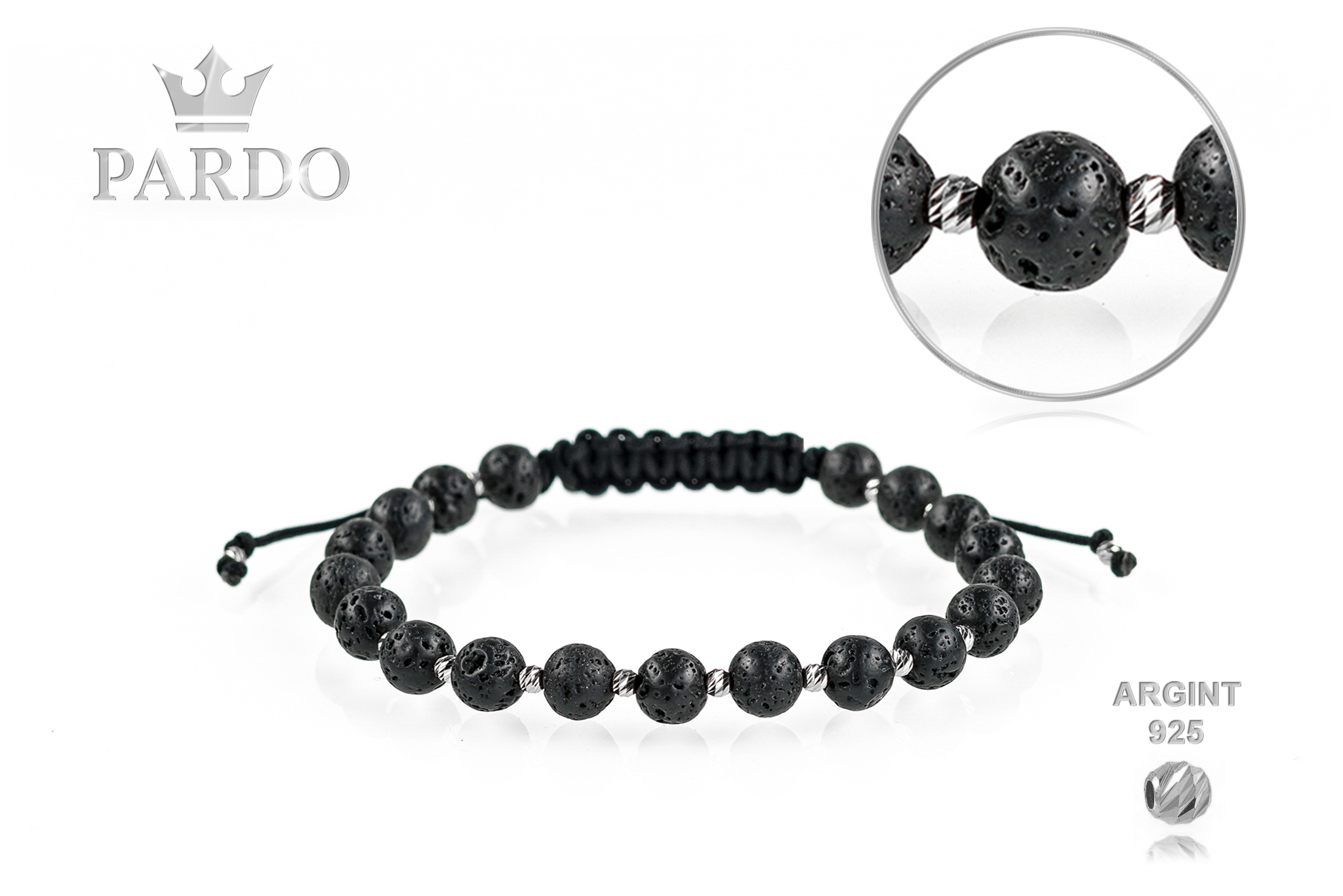 Brățară PARDO cu Argint 925 realizată manual în atelier propriu cu șnur de calitate premium, folosind o combinație unică de sfere striate din Argint 925 import Italia și pietre semiprețioase sau cristale de tip Lava Stone cu diametrul de 6 mm.