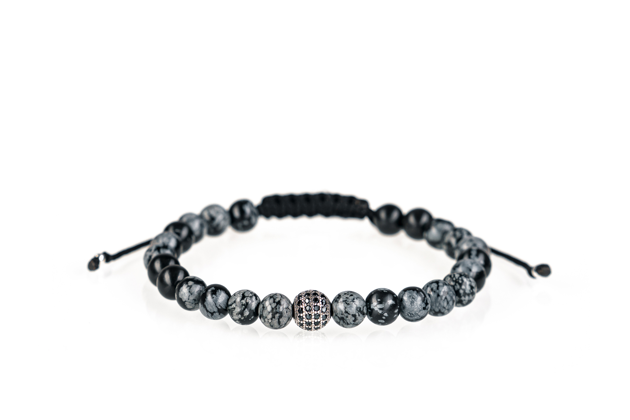 Brățară unisex Pardo realizată cu CZ Argint 925 și pietre semiprețioase Obsidian Snow Flake