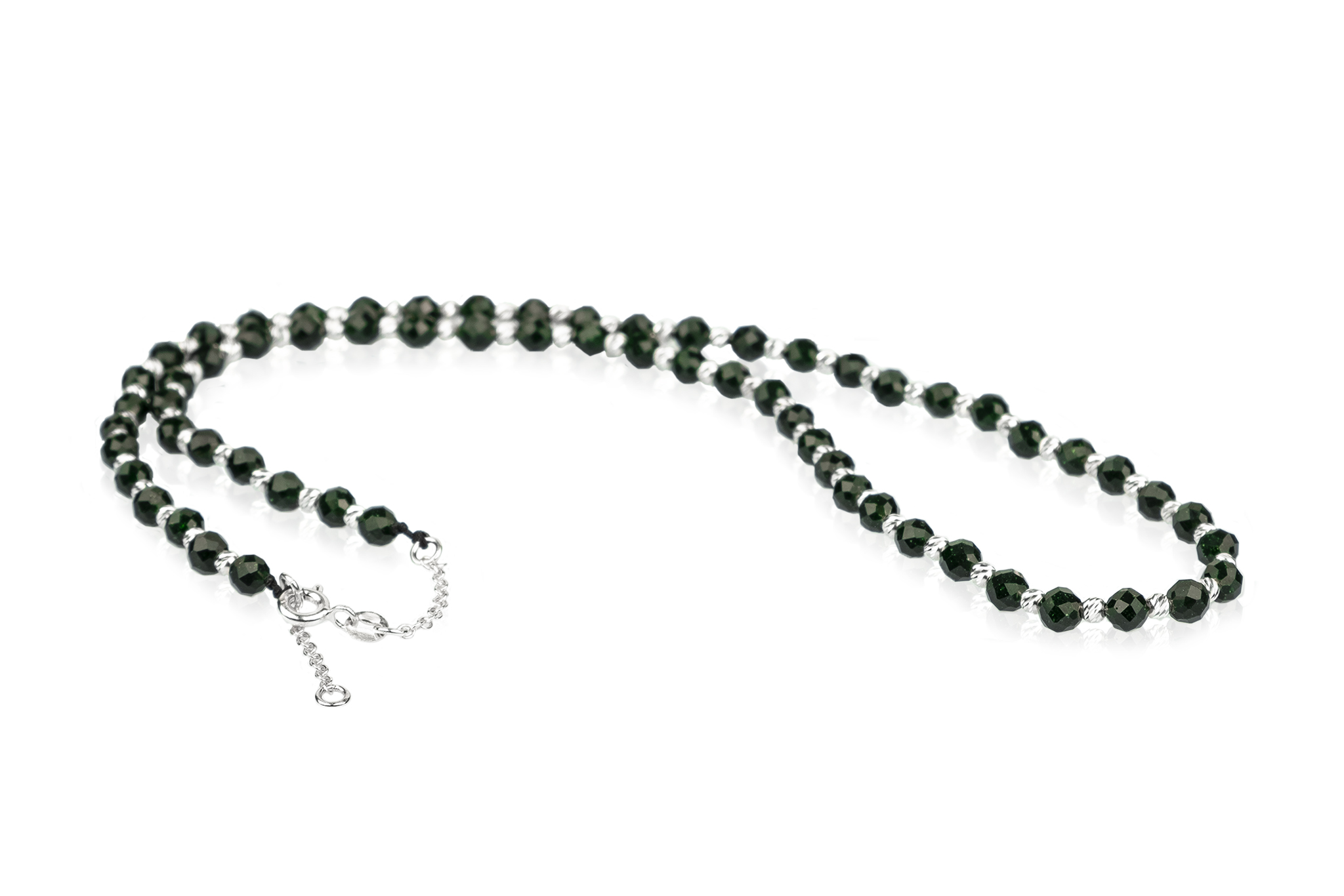 Colier Pardo realizat cu sfere din Argint 925 & pietre semiprețioase Piatra Soarelui Verde cu diametrul de 4 mm
