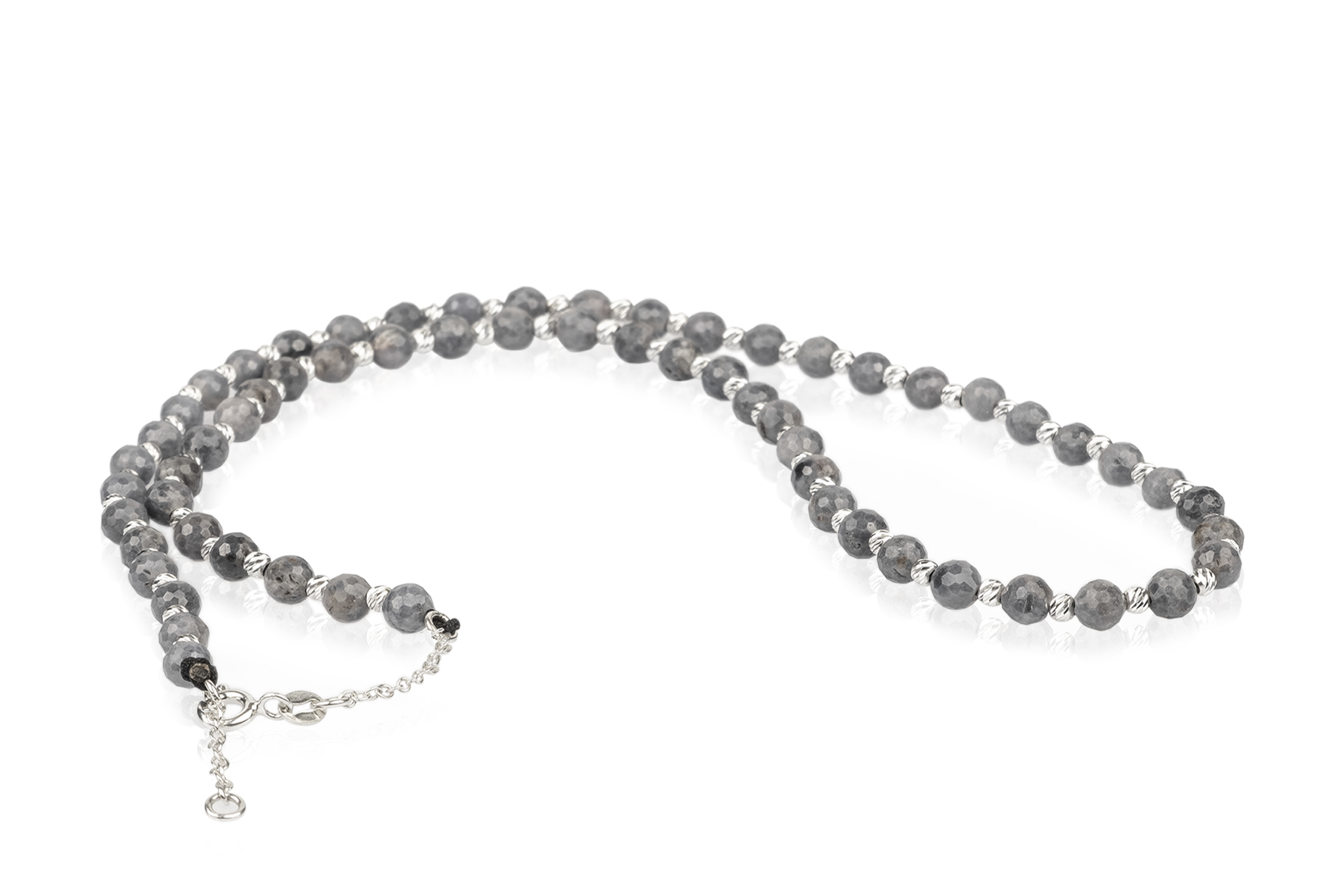 Colier Pardo realizat cu sfere din Argint 925 & pietre semiprețioase Safir Gri cu diametrul de 4 mm